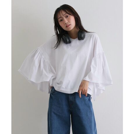 ゆったりとしたドロップショルダーと広がる袖が、自然な抜け感を演出。