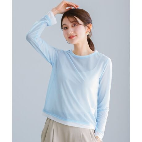 シアートップス シアーカットソー 配色トップス 配色デザイン 強撚素材 ドライタッチ 透け感トップス レイヤードトップス 夏トップス きれいめカットソー