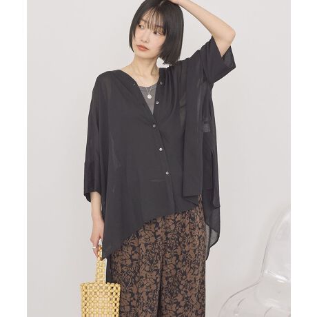 前後差のあるヘムがこなれた表情を作るポンチョシャツ。身幅をゆったりとったボックスシルエットで、羽織るだけで抜け感のある着こなしに仕上がります。キーネックの程よい開きが女性らしくきれいな首元を演出。ボトムを選ばず、カジュアルからフェミニンまで幅広いスタイルに活躍する一枚です。