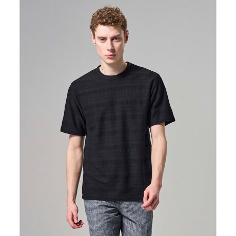 ジャガードボーダー クルーネックTシャツ編み上げたボーダーをブロッキング