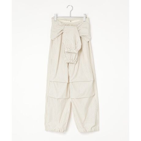 メンズライクなシルエットのパンツにシャツを腰に巻いたようなパーツをプラスして存在感のあるデザインに仕上げました。