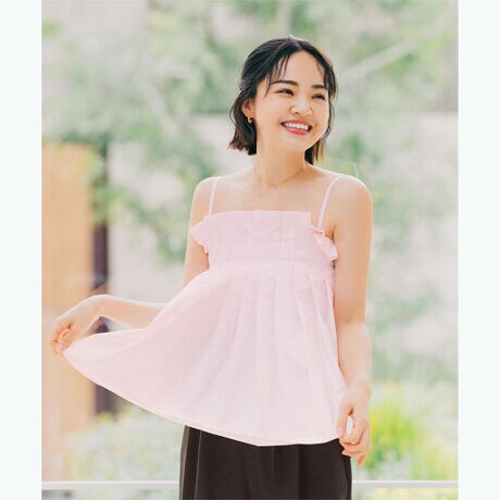 プリーツデザインが華やかなキャミソールトップス。