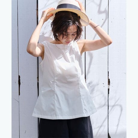 ハリ感ある生地で身体のラインを拾いにくく、腰まわりをさりげなくカバーできます。