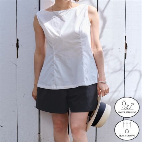 ハリ感のある素材を使用しており、ショート丈でもカジュアルになりすぎないデザインに仕上げています。