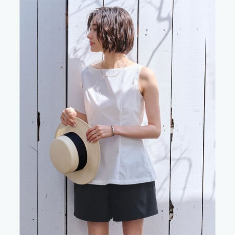 ハリ感のある素材を使用しており、ショート丈でもカジュアルになりすぎないデザインに仕上げています。