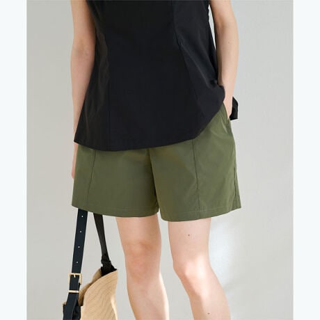 ハリ感のある素材を使用しており、ショート丈でもカジュアルになりすぎないデザインに仕上げています。