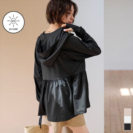 ペプラムデザインがポイントの、きれいめに着られるラッシュガードパーカー。