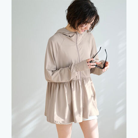 ペプラムデザインがポイントの、きれいめに着られるラッシュガードパーカー。
