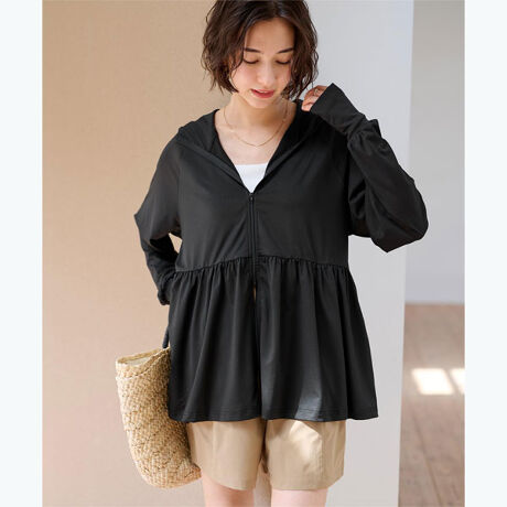 ペプラムデザインがポイントの、きれいめに着られるラッシュガードパーカー。