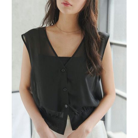 シースルーの軽やかな透け感は春夏のレイヤードスタイルも涼しげな表情に仕上げてくれる一枚。