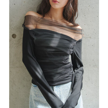 様々なテイストのスタイリングにマッチし、シンプルスタイルも着映えるチュールトップスです。