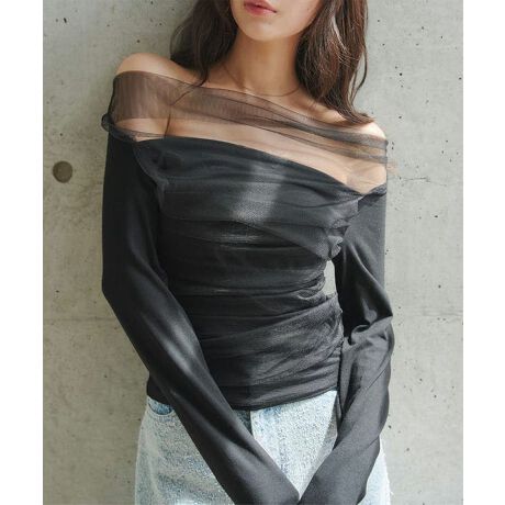 様々なテイストのスタイリングにマッチし、シンプルスタイルも着映えるチュールトップスです。