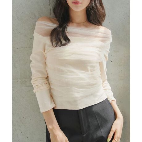 様々なテイストのスタイリングにマッチし、シンプルスタイルも着映えるチュールトップスです。