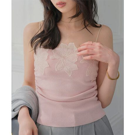 胸元に華やかさを添える花柄レースが一枚でもインナー使いでも上品に着映え、大人の甘さをプラス。