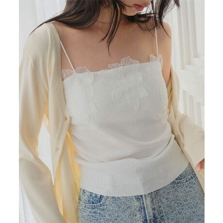 カップ付きニットレースキャミソール [C7884]
