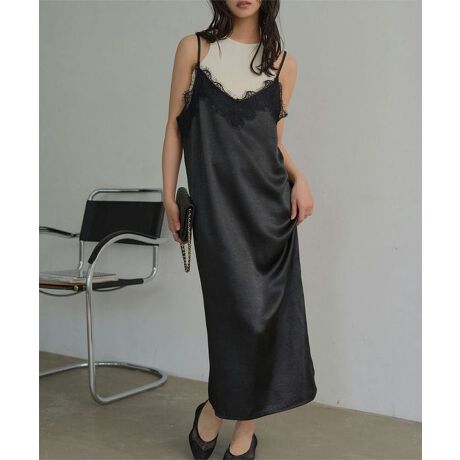 サテンレースキャミワンピース [E3580]