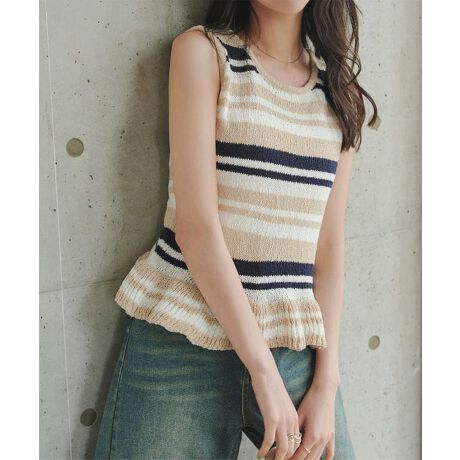 夏のマリンスタイルを爽やかに彩るマルチボーダーペプラムニット。