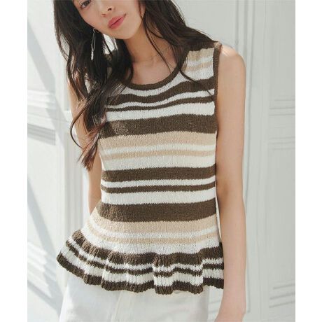 夏のマリンスタイルを爽やかに彩るマルチボーダーペプラムニット。