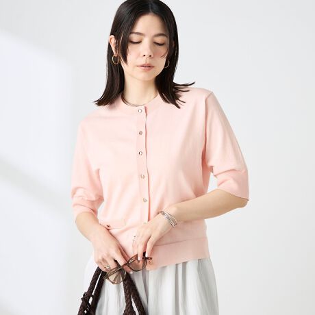 《手洗い可能》エアリーストレッチ5分袖Cネックカーディガン