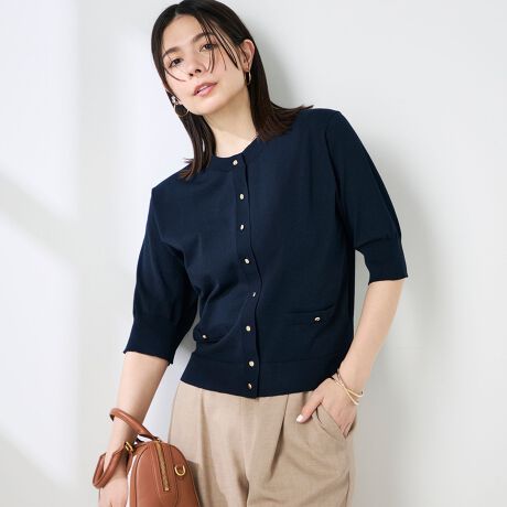 《手洗い可能》エアリーストレッチ5分袖Cネックカーディガン