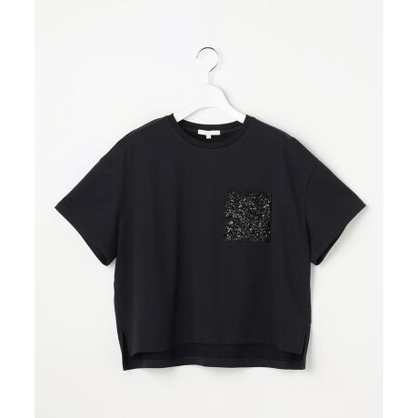 日常に煌めきを添える大人のスパンコールTシャツ■デザイン胸元のポケットがアクセントになったTシャツです。ポケットにスパンコールをあしらうことで、カジュアルすぎない上品な大人スタイルを演出します。長すぎない絶妙な丈感に仕上げており、スカートからパンツまで、合わせるボトムスを選ばず幅広いコーディネートを楽しんでいただけます。■素材肌側に綿を使用して高密度に編み立てたこだわりの素材。表面にはシルクのような上品な光沢と柔らかさがあります。原糸の特性を最大限に活かすバイオ加工を施すことで、一般的な裏毛とは一線を画すベーシックながらもモード感の漂う一着に仕上げました。
