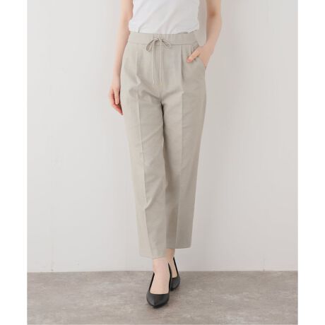 足首に向かってほっそりとしたテーパードシルエットはきちんと感も残しつつ、リラクシーなウエストの仕様で、オフィスでも快適に着用いただけます。
