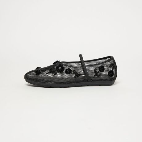メッシュ素材とビーズ刺繍がキャッチーなフラットシューズ
