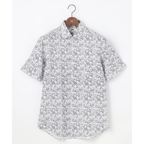 ナチュラルなかすれ感を表現したペーズリー柄が特徴の半袖シャツです。襟先を裏側で固定する隠しボタンダウン仕様で、カジュアルながらもきちんとした印象を与えます。