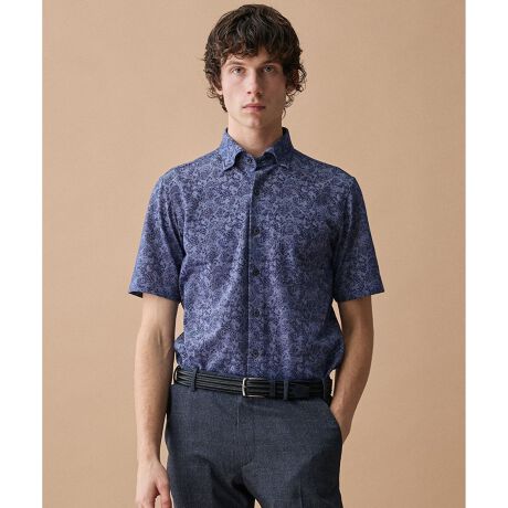 ナチュラルなかすれ感を表現したペーズリー柄が特徴の半袖シャツです。襟先を裏側で固定する隠しボタンダウン仕様で、カジュアルながらもきちんとした印象を与えます。