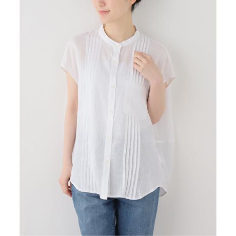 前身頃のタックと後身頃のふんわりとしたシルエットがポイントのフレンチスリーブシャツ。