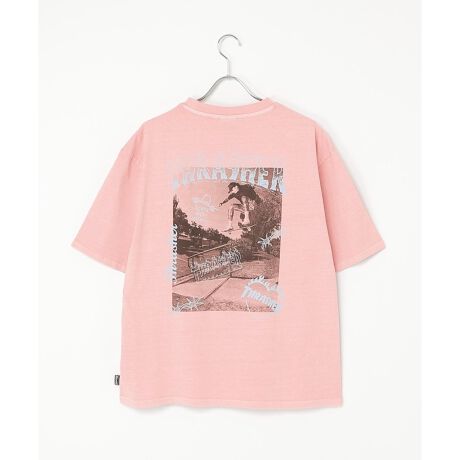 ピグメント加工でヴィンテージ感を出した雰囲気のあるアイテムで、ストリートカジュアルを演出するプリントTシャツ。