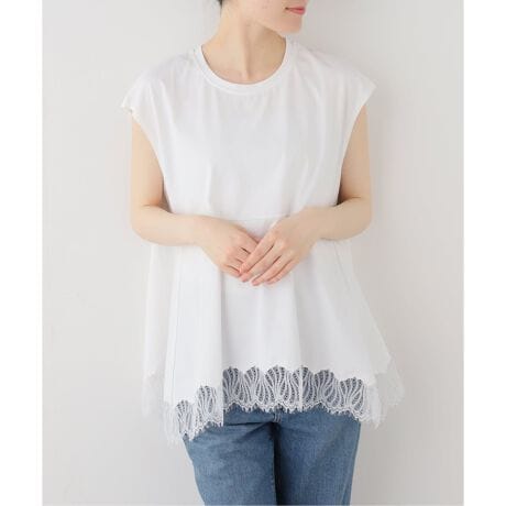カットソー素材にレースを施した、トレンド感高まる華やかなカットソー。