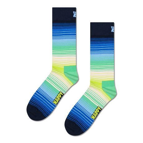 大胆なブラックを基調に、鮮やかなグリーンからブルーへのグラデーションストライプが特徴のグラデーションストライプソックスで、スタイルをワンランクアップさせましょう。