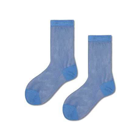メタリックな輝きを放つメタライズ加工の繊維を使用した、きらめくブルーの3/4クルーソックスで、スタイルをワンランクアップさせましょう。