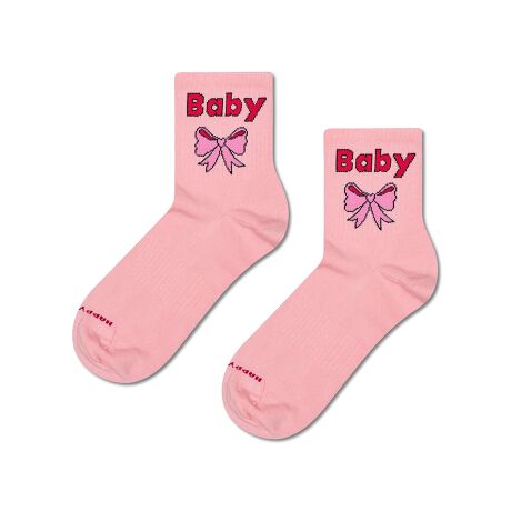 愛らしいリボンプリントと「baby」のディテールが施されたピンクの1/2クルーソックスで、スニーカーコーデをワンランクアップさせましょう。