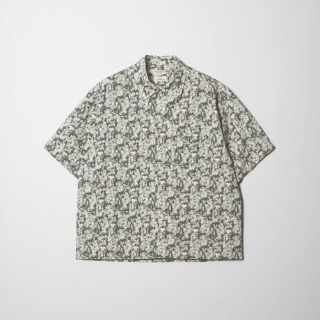 落ち着いたトーンでまとめた、表情豊かな総柄が魅力の半袖シャツ。
