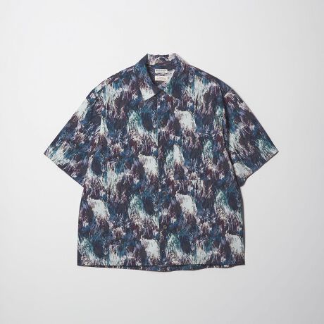 落ち着いたトーンでまとめた、表情豊かな総柄が魅力の半袖シャツ。