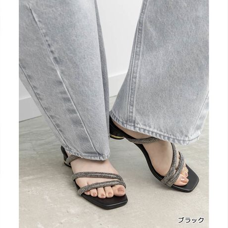 歩く度にキラキラと表情を変える繊細なビジューをあしらったストラップサンダル。