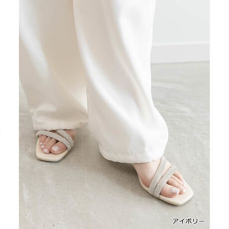 歩く度にキラキラと表情を変える繊細なビジューをあしらったストラップサンダル。