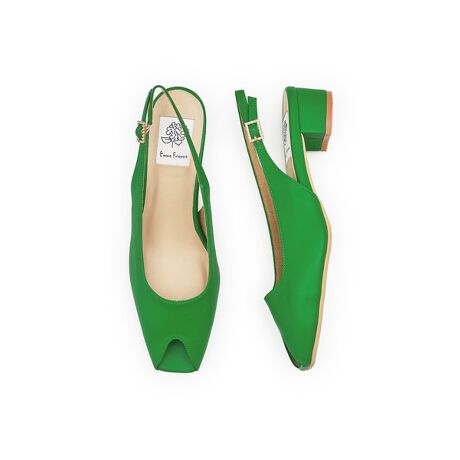 スリングバックにはゴムストラップを採用し、ワンタッチで着脱できるのが魅力です。