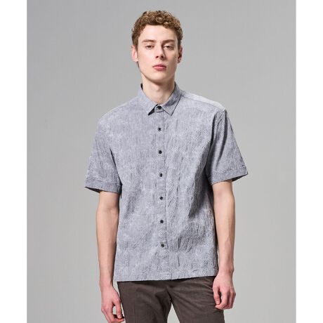 アブストラクトジャガードストレッチ レギュラーカラー半袖シャツ