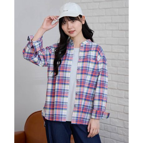 夏を彩るマドラスチェックのスタンドカラーシャツ。
