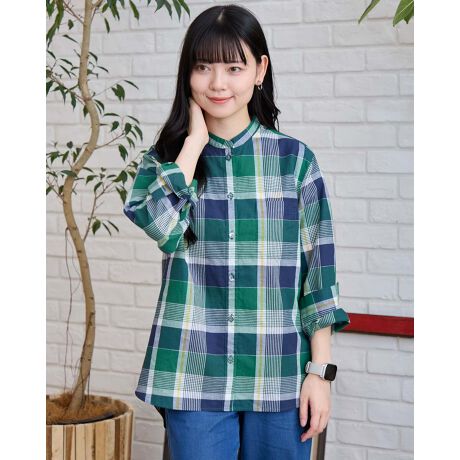 夏を彩るマドラスチェックのスタンドカラーシャツ。