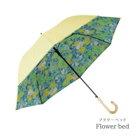晴雨兼用傘の内側に広く使われている黒コーティングをなくし、水彩画のフラワーアートを施しました。