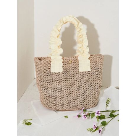 フリルリボンハンドルカゴトートバッグ