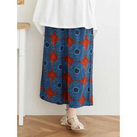 [型番:26410712275]落ち感のあるレーヨンシーチング素材に、存在感のある柄をプリントしたスカート。軽やかで動きに合わせて揺れるシルエットが、スタイリングに華やかさをプラスします。無地のカットソーを合わせて柄を引き立てたり、コンパクトなトップスをインしてバランスよくまとめる着こなしもおすすめです。Hare no hi/ハレノヒ