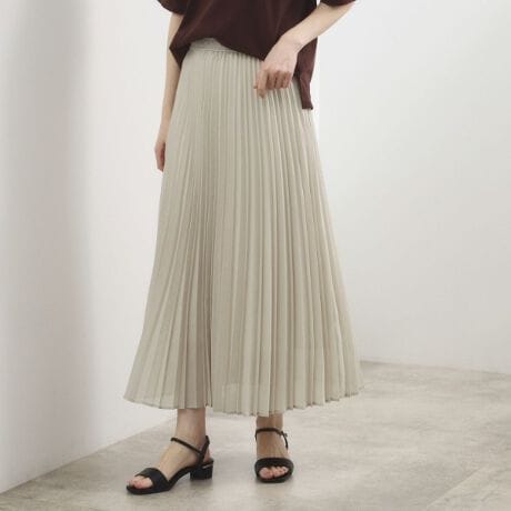 旬のムードをエレガントに装うプリーツスカート。
