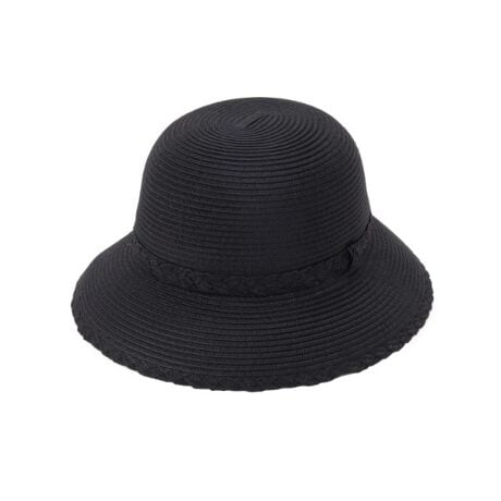 クラウン部分とつばの縁にも同素材の三つ編みをあしらい、シンプルながらも統一感のある上品なアクセントをプラスしました。