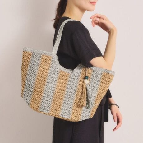 季節感を演出する大人の雑材ストライプバッグ。