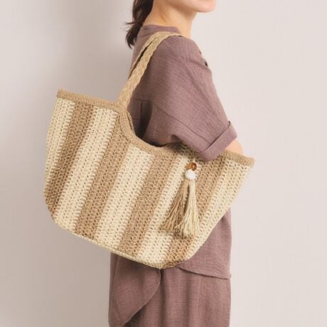 涼しげなペーパー素材を丁寧に編み込んだ、ナチュラルな風合いが魅力のトートバッグ。